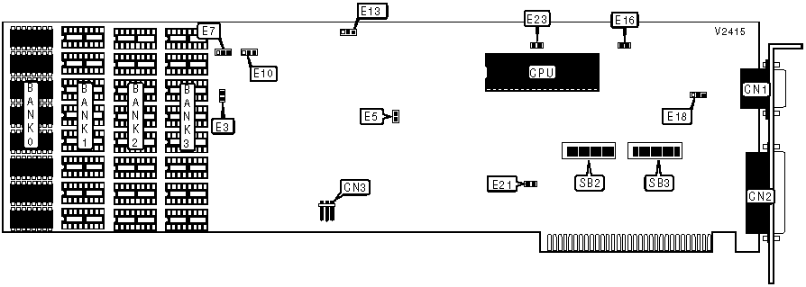 Note:A total of 255 base address settings are available. The switches are a binary representation of the decimal memory addresses. SB2/7 is the Most Significant Bit and switch SB3/6 is the Least Significant Bit. The switches have the following decimal values:SB2/7=512, SB2/8=256, SB1/8=128, SB1/7=64, and SB1/6=32. Turn off the switches and add the values of the switches and convert to hexadecimal to obtain the correct memory address. (Off=1, On=0)