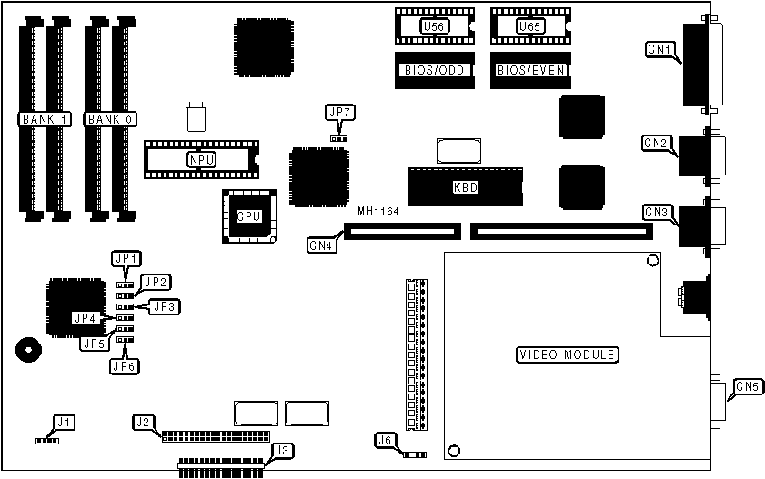 Floppy drive controller module, IDE interface, parallel port, serial ports (2), video controller module |