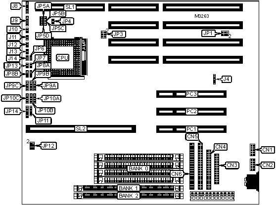 32-bit VESA local bus slot, 32-bit PCI slots (3), floppy drive interface, green PC connector, IDE interfaces (2), parallel port, serial ports (2), cache slot |