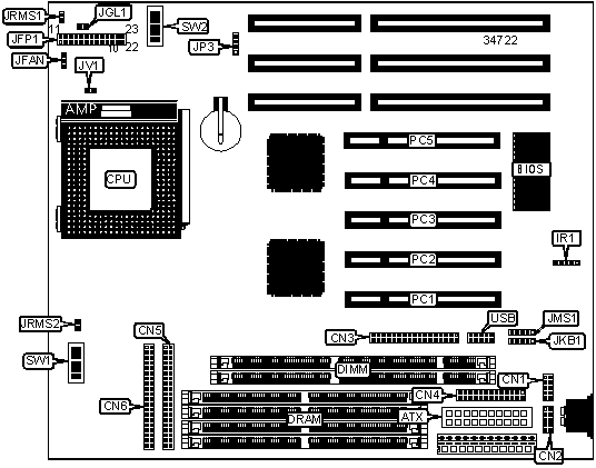 Note: Board accepts EDO memory. Do not mix SIMMs & DIMMs.