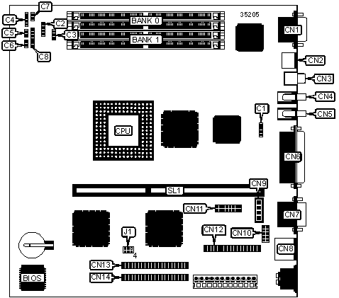 Floppy drive interface, game interface, IDE interfaces (2), parallel port, PS/2 mouse port, serial ports (2), VGA port, S-VGA port, riser slot, line in, line out, audio in – CD-ROM, modem connector,IR connector, RCA jack