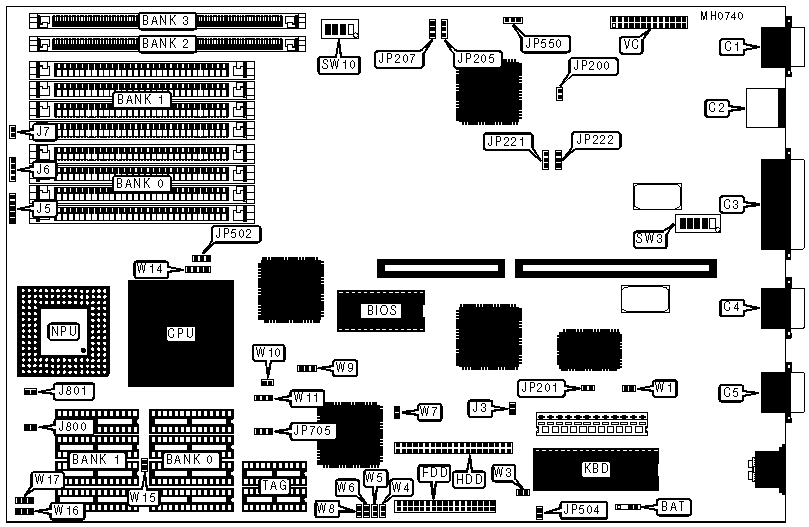 Parallel port, IDE interface, serial ports (2). PS/2 bus mouse, floppy drive interface, VGA port, video option connector