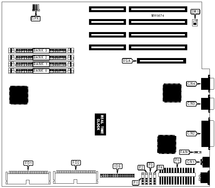 VGA feature connector, floppy drive interface, IDE interface, parallel port, serial port, VGA port, bus mouse