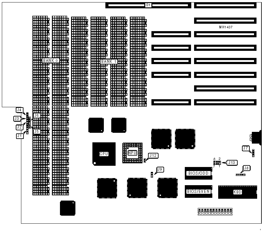 NoteCPU speed select must not be changed while power is applied to the system. Press (Ctrl) (Alt) (+) to change to the initial speed set using J5. Pressing (Ctrl) (Alt) (-) switches to the opposite speed. | ||||