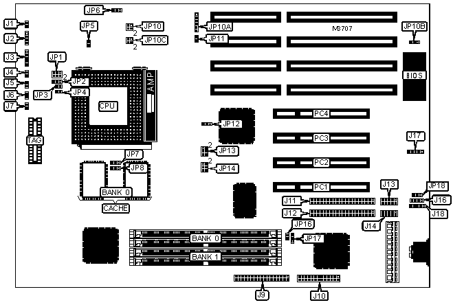 Note: Board accepts EDO memory. Board also accepts x 32 SIMMs. Banks are interchangeable.