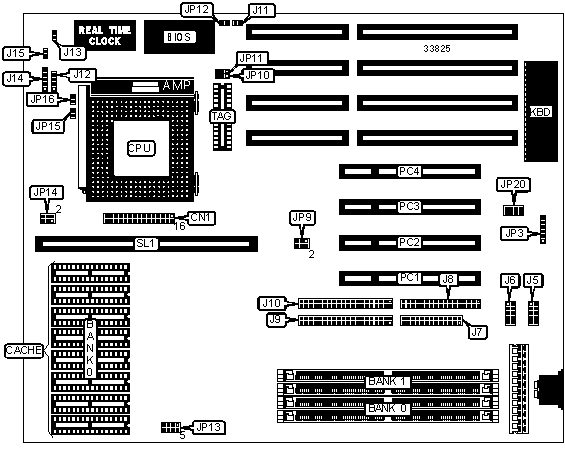 Note: Board accepts EDO memory. Board also accepts x 32 SIMMs. Banks are interchangeable.