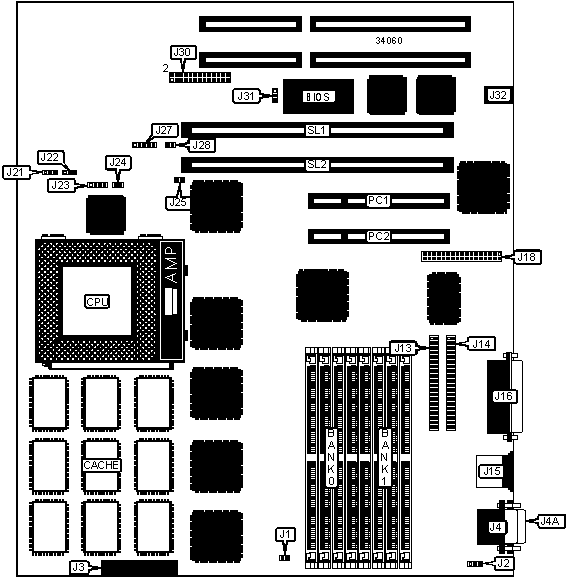 Note: Board can be installed with either 1MB or 2MB of cache. The size of the chips is unidentified. |