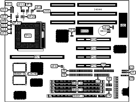 32-bit PCI slots (4), floppy drive interface, green PC connector, IDE interfaces (2), parallel port, PS/2 mouse interface, serial ports (2), cache slot, IR connector, USB connectors (2)