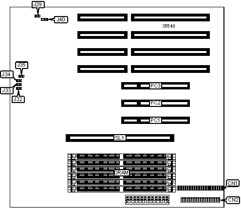 32-bit PCI slots (3), IDE inteface, floppy drive interface, CPU slot