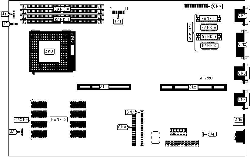 PS/2 mouse port, parallel port, serial ports (2), VGA port, VGA feature connector, floppy drive interface, IDE interface, riser slots (2)