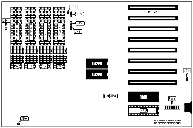 Note:When using 44256 or 4464 chips, insert the chips into the dual-size sockets.