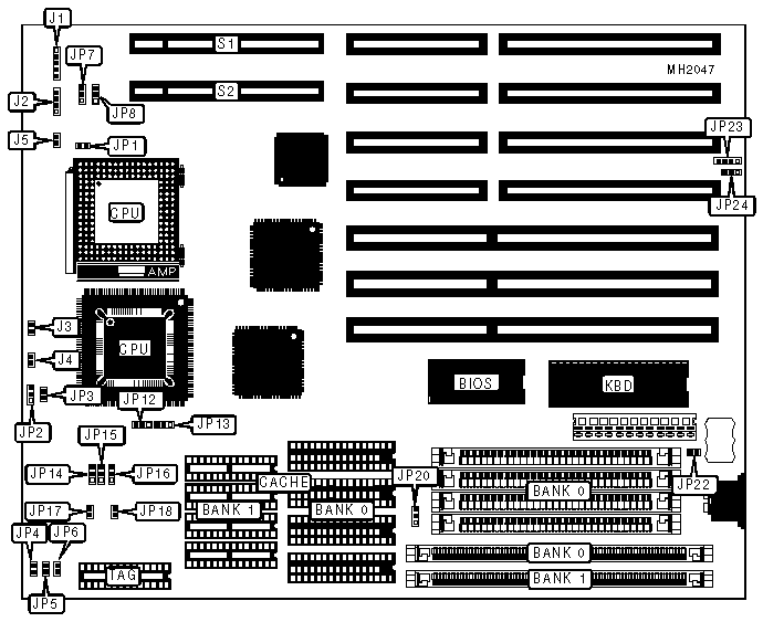 Note: JP24 must be returned to its original position (pins 2 & 3 closed) after CMOS clear.