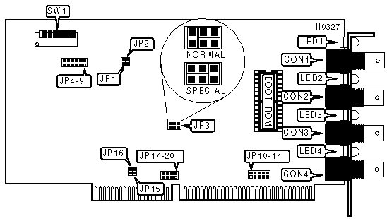 Note:Jumpers JP17 to JP20 count from right to left in the diagram. |
