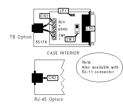 25-pin serial port (RS-232), network interface via RJ-45, RJ-11 or terminal block |