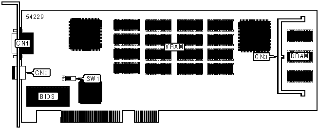 Chips are located on both sides of the board. ELSA GLORIA-XL has 24MB EDO DRAM onboard. The card will support one 16MB EDO DRAM memory module for a total of 40MB EDO DRAM