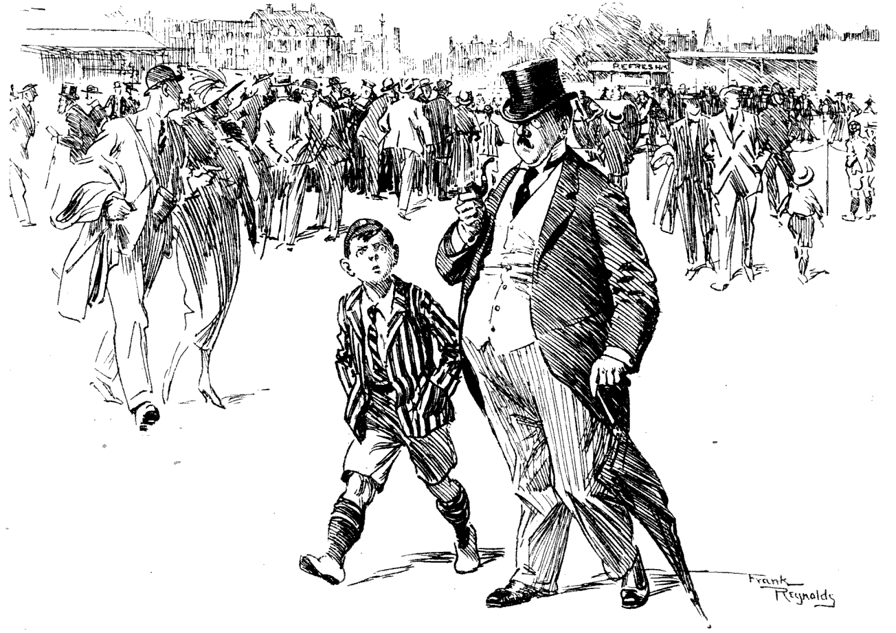 The scheme is based on the Herd instinct—on the tendency of most creatures to follow their leader. For example, if you are walking down to your early train, with plenty of time to spare as you suppose, and you observe the man in front of you looking at his watch and suddenly quickening his steps, first to a smart walk, then to a brisk jog-trot, it is not in human nature, however you may trust your own watch, not to follow suit. This is precisely what Piggott led me to do one morning about six weeks back.
