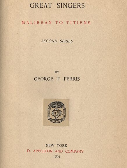 GREAT SINGERS, SECOND SERIES, MALIBRAN TO TITIENS. |