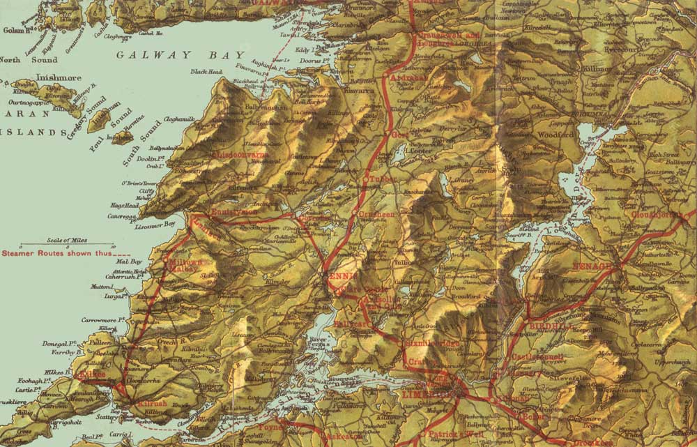 If they succeed in these endeavours, they will satisfy the compiler. No inexorable route is insisted upon, but no suggestion is stinted which may help the tourist to enjoy fully the beautiful country he passes through—and a beautiful country it truly is, be it approached from Athlone, its north-western gate, by the Shannon, where,