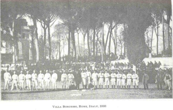 The grounds of this parent organization were soon transferred to the Elysian Fields, at Hoboken, N. J., where the Knickerbockers played their first match game on June 19th, 1846, their opponents not being an organized club, but merely a party of gentlemen who played together frequently, and styled themselves the New York Club. The New Yorks won easily in four innings, the game in those days being won by the club first making twenty-one runs on even innings. The Knickerbockers played at Hoboken for many years, passing out of existence only in 1882. In 1853 the Olympic Club of Philadelphia was organized for the purpose of playing town-ball, a game which had some slight resemblance to base-ball. The Olympic Club, however, did not adopt the game of base-ball until 1860, and consequently cannot claim priority over the Knickerbockers, although it was one of the oldest ball-playing organizations in existence, and was disbanded only a few years ago.