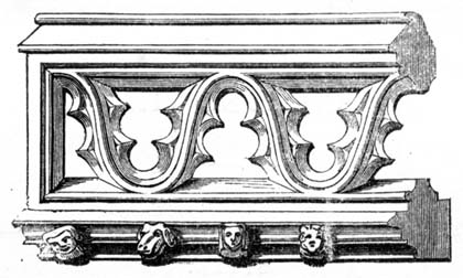 But the suppression of the monasteries tended in no slight degree to hasten the decline and fall of our ancient church architecture, to which other causes, such as the revival of the classic orders in Italy, also contributed. The churches belonging to the conventual foundations, which had been built at different periods by the monks or their benefactors, and the charges of erecting and decorating which from time to time in the most costly manner, had been defrayed out of the[15] monastic revenues, and from private donations, being seized by the crown, were reduced to a state of ruin, and the sites on which they stood granted to dependants of the court. The former reverential feeling on these matters had greatly changed; and as the retention of some few of the ministerial habits, the square cap, the cope, the surplice, and hood, which were deemed expedient for the decent ministration of public worship, gave great offence to many, and was one of the most apparent causes which led to that schism amongst the Reformers, on points of discipline, which afterwards ended in the subversion, for a time, of the rites and ordinances of the Church of England, any attempt towards beautifying and adorning (other than with carved pulpits and communion-tables or altars) the places of divine worship, which were now stripped of many of their former ornamental accessories, would have been regarded and inveighed against as a popish and superstitious innovation; and a charge of this kind was at a later period preferred against Archbishop Laud. Parochial churches were, therefore, now repaired when fallen into a state of dilapidation, in a plain and inelegant mode, in complete variance with the richness and display observable in the style just preceding this event.[16]