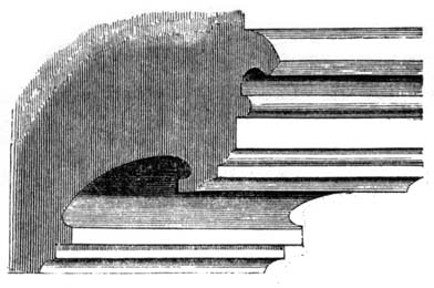 In the early period of the empire the Romans imitated the Grecians in their buildings of magnitude and beauty, forming, however, a style of greater richness in detail, though less chaste in effect; and columns of the different orders, with[5] their entablatures, were used to support and adorn their public structures: but in the fourth century, when the arts were declining, the style of architecture became debased, and the predominant features consisted of massive square piers or columns, without entablatures, from the imposts of which sprung arches of a semicircular form; and it was in rude imitation of this latter style that the Saxon churches were constructed.