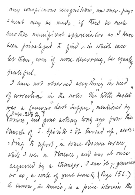 The present volume was initiated in Florence, and, from its first inception, invested with the cordial assent and the sympathetic encouragement of Robert Barrett Browning. One never-to-be-forgotten day, all ethereal light and loveliness, has left its picture in memory, when, in company with Mr. Browning and his life-long friend, the Marchesa Peruzzi di’ Medici (náta Story), the writer of this biography strolled with them under the host’s orange trees and among the riotous roses of his Florentine villa, “La Torre All’ Antella,” listening to their sparkling conversation, replete with fascinating reminiscences. To Mr. Browning the tribute of thanks, whose full scope is known to the Recording Angel alone, is here offered; and there is the blending of both privilege and duty in grateful acknowledgements to Messrs. Smith, Elder, & Company for their courtesy in permitting the somewhat liberal drawing on their published Letters of both the Brownings, on which reliance had to be based in any effort to