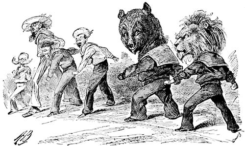 And yet the best type of caricature should not require a high degree of intelligence. Many clever cartoonists over-reach themselves by an excess of cleverness, appealing at best to a limited audience. Of this type are the cartoons whose point lies in parodying some famous painting or a masterpiece of literature, which, as a result, necessarily remains caviare to the general. There is a type of portrait caricature so cultured and subtle that it often produces likenesses truer to the man we know in real life than a photograph would be. A good example of this type is the familiar work of William Nicholson, whose portrait of the late Queen of England is said to have been recognized by her as one of the most characteristic pictures she had ever had taken. What appeals to the public, however, is a coarser type, a gross exaggeration of prominent features, a willful distortion, resulting in ridicule or glorification. Oftentimes the caricature degenerates into a mere symbol. We have outgrown the puerility of the pictorial pun which flourished in England at the close of the seventeenth century, when cartoonists of Gillray's rank were content to represent Lord Bute as a pair of boots, Lord North as Boreas, the north wind, and the elder Fox with the head and tail of the animal suggested by his name. Yet personification of one kind and another, and notably the personification (p. 9) of the nations in the shape of John Bull and Uncle Sam and the Russian Bear, forms the very alphabet of political caricature of the present day. Some of the most memorable series that have ever appeared were founded upon a chance resemblance of the subject of them to some natural object. Notable instances are Daumier's famous series of Louis Philippe represented as a pear, and Nast's equally clever, but more local, caricatures of Tweed as a money-bag. It would be interesting, if the material were accessible, to trace the development of the different personifications of England, France, and Russia, and the rest, from their first appearance in caricature, but unfortunately their earlier development cannot be fully traced. The underlying idea of representing the different nations as individuals, and depicting the great international crises in a series of allegories or parables or animal stories—a sort of pictorial Æsop's fables—dates back to the very beginning of caricature. In one of the earliest cartoons that have been preserved, England, France, and a number of minor principalities which have since disappeared from the map of Europe, are represented as playing a game of cards with some disputed island possessions as the stakes. In this case the several nations are indicated merely by heraldic emblems. The conception of John Bull was not to be evolved until a couple of centuries later. This cartoon, like the others of that time, originated in France under Louis XII. The further development of the art was decisively checked under the despotic reign of Louis XIV., and the few caricaturists of that time who had the courage to use their pencil against the king were driven to the expedient of publishing their works in Holland.