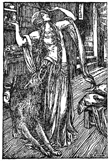 The queen greeted him courteously, and bade him sit beside her; but little did he think wherefore she made such fair semblance to him.