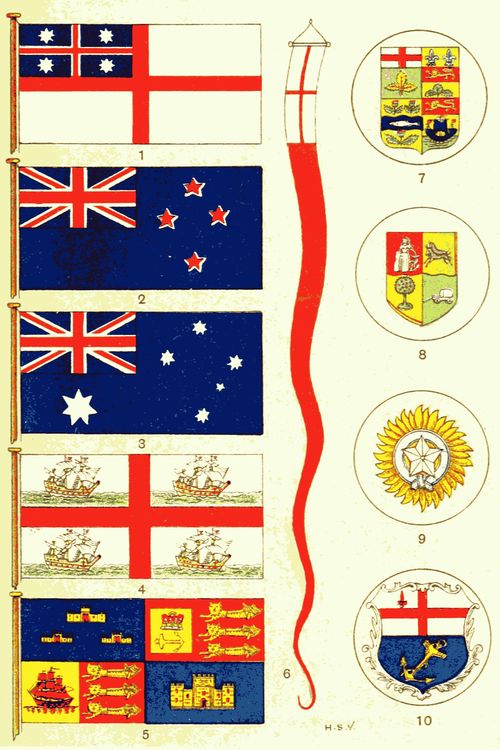 In the first chapter the ground worked over by Admiral Siegel has been solidified by examination of the original authorities, with the result that a few errors have been detected and some new facts brought to light, and the investigation has also been extended further; the most important of the additions being those relating to the standards in the Phoenician and Greek ships of war, forms of the[vi] early "standard" and "gonfanon," and the Genoese Standard of St George and the Dragon. For the deduction that the use of a national flag arose in the Italian city states I take the entire responsibility, well aware that further investigations may possibly bring to light fresh facts which will overthrow it.