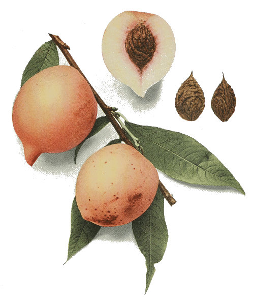 In all of these fruit-books it has been difficult to decide what varieties merit color-plates and full descriptions. Briefly, the choice of sorts to be illustrated and described in detail has been determined by the following considerations: (1) By the value of the variety for home or commercial orchards; (2) the probable value if the peach is a new sort on probation; (3) its desirability as a parent in breeding new peaches or to show combinations of varieties, to illustrate new characters, or to show the range in variation—in a word to enlighten the peach-breeder; (4) not a few varieties are described and illustrated to show the trend of peach-evolution—for their historical value; (5) to show relationships of varieties.