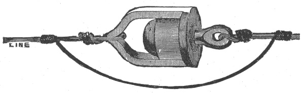 Series-Parallel System.—This is a combination of the series and parallel systems, and is arranged as indicated in fig. 790. Several lamps are arranged in parallel to form a group, and a number of such sets are connected in series, as shown. It is not necessary for the groups to be identical, provided they are all adapted to take the same current in amperes, which should be kept constant, and provided the lamps of each set agree in voltage. For example, on the ordinary 10-ampere arc circuit, one group 703 might consist of 5 lamps, each requiring 2 amperes at 50 volts; the next might be composed of 10 lamps, each taking 1 ampere at 100 volts, and so on.