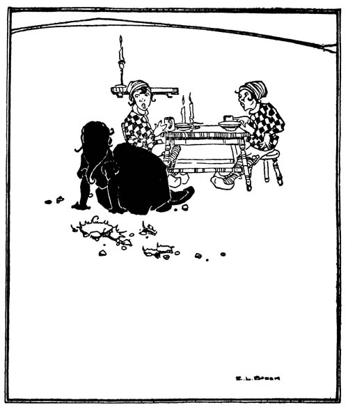 “Oh, mother!” cried Merrimeg. “Let me in, quick! I’m terrible sorry, and I’ve been up the[10] chimney, and I’ll never, never do so any more, indeed I won’t!”