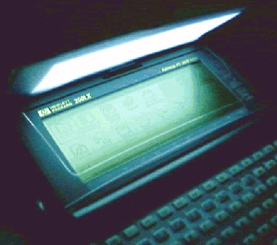 The screen of the 100/200LX is reflective monochrome LCD (liquid crystal display). Color backlit LCD screens are used in most notebook personal computers these days. The HP's non-backlit screen helps give it its long battery life. It is very visible in good lighting conditions, but Japanese users wanted more.