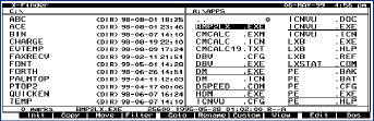 The default, opening screen is set up to select from three palmtop drives, remote drives and the split screen file manager. It is also configured to open the Phonebook and Appointment PIMs, to run CHKDSK on either A or C, and to do remote backups. This is my personal configuration. However, with X-Finder, you can adopt the configuration provided with the initial installation, tweak it a little or tweak it a lot as I have. Almost everything about XF is user-definable.